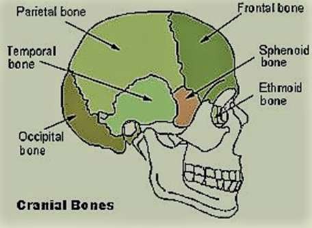 ⦁ Cranium: The cranial bones also called the Neurocranium that forms the upper part of the skull and it protects the brain and brain stem. The cranial bones are as follows