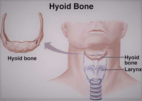 The hyoid Bone: the hyoid bone is a horse shoe shaped bone also called as lingual or tongue bone located below the lower jaw in the anterior midline of the neck between the chin and thyroid cartilage and is attached by the muscles to the tongue and larynx. It is the only bone that is not articulated with any other bone nearby but distantly articulated to bones with muscles and ligaments.